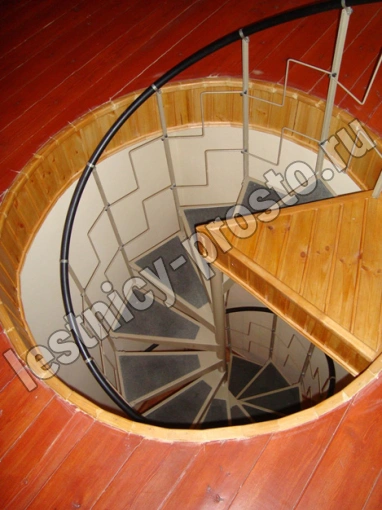 Компактная металлическая винтовая лестница КАСКАД. Ступени лестницы покрыты специальным антискользящим материалом.
