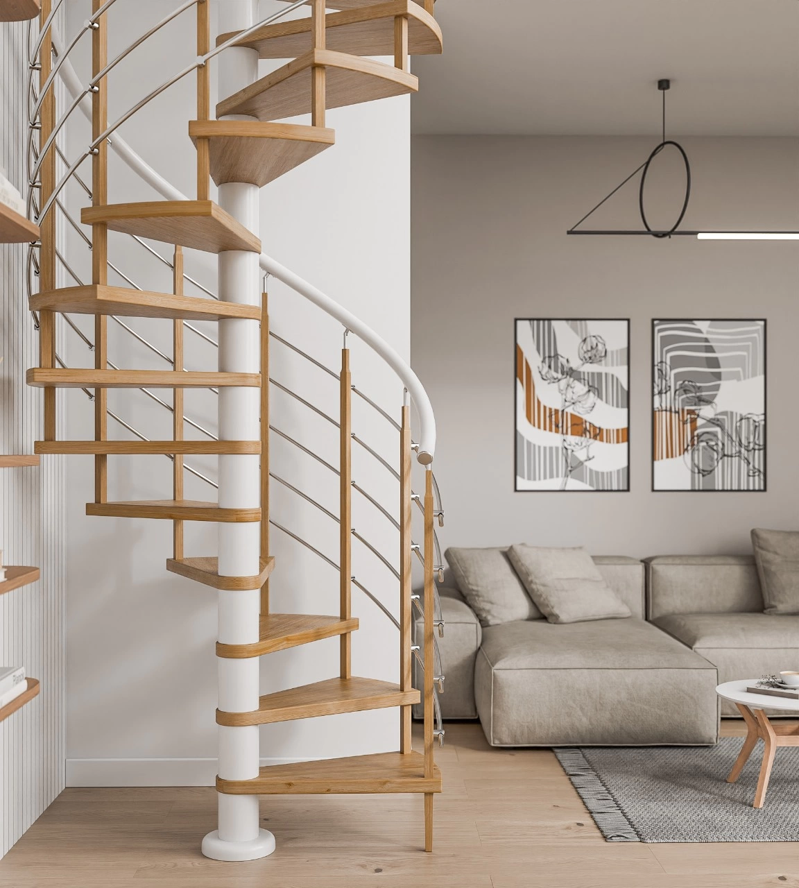 Винтовая лестница представлена в трёх вариантах диаметра: 120, 140 и 160 см.