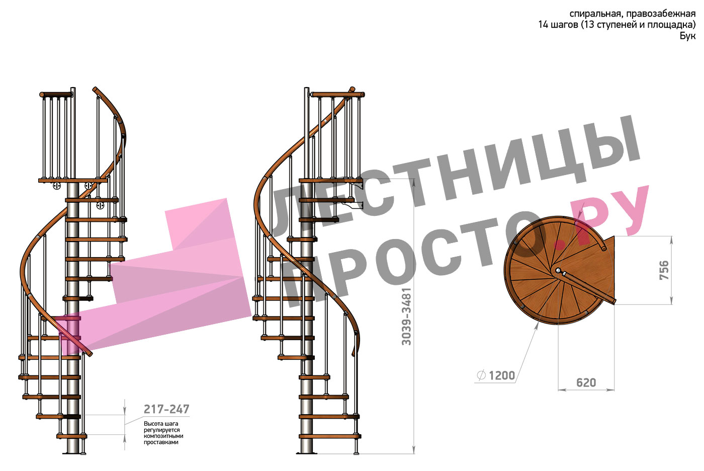 Винтовая лестница Prosto Spiral White D120см, h303.9-348,1 см, бук