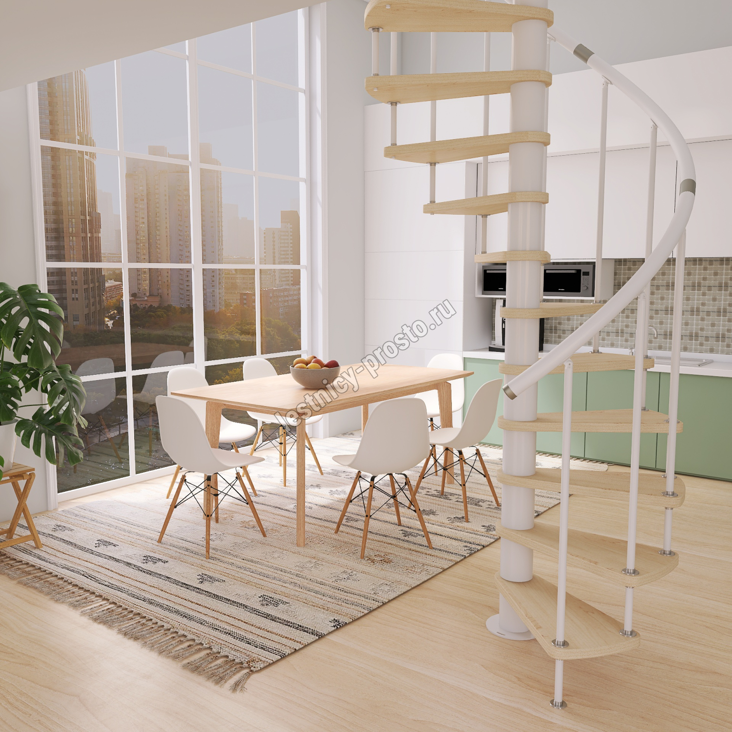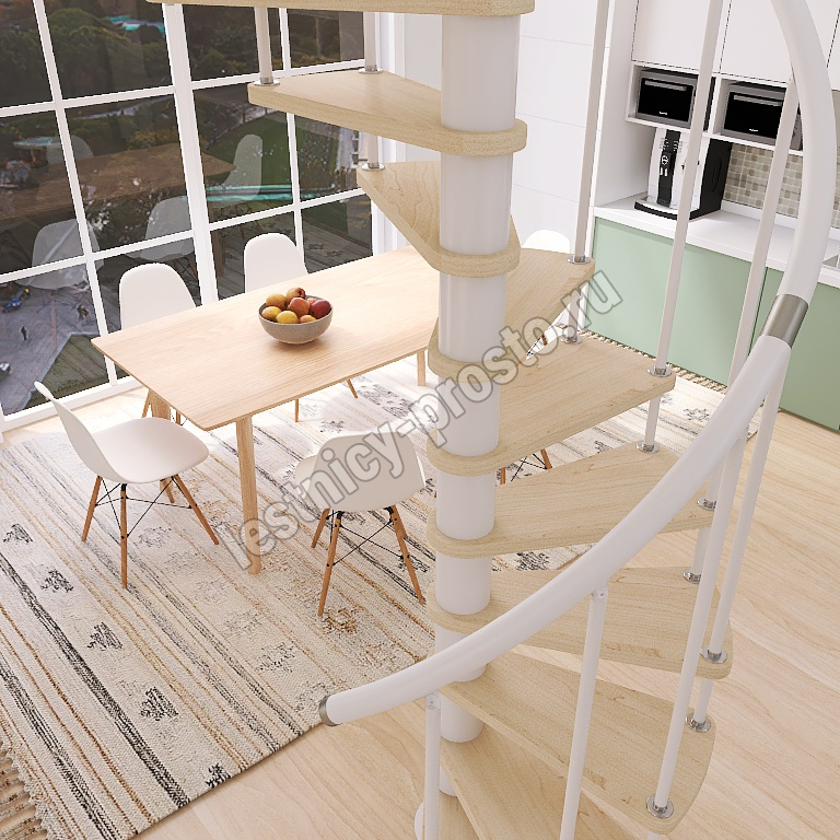 Винтовая лестница Prosto Spiral White D120см, h325.7-369.8 см, бук