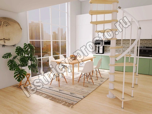 Решение о направлении поворота принимается при сборке лестницы - универсальная конструкция позволяет собрать правозабежную и левозабежную лестницы. Высота ступеней регулируется с шагом 3 мм. в пределах 217-247 мм., благодаря чему, лестница прекрасно подгоняется под необходимую высоту.