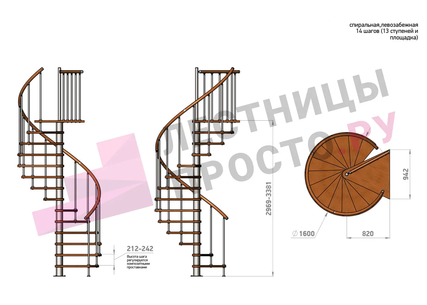 Винтовая лестница Prosto Spiral White/Высота 2757 - 3139 мм