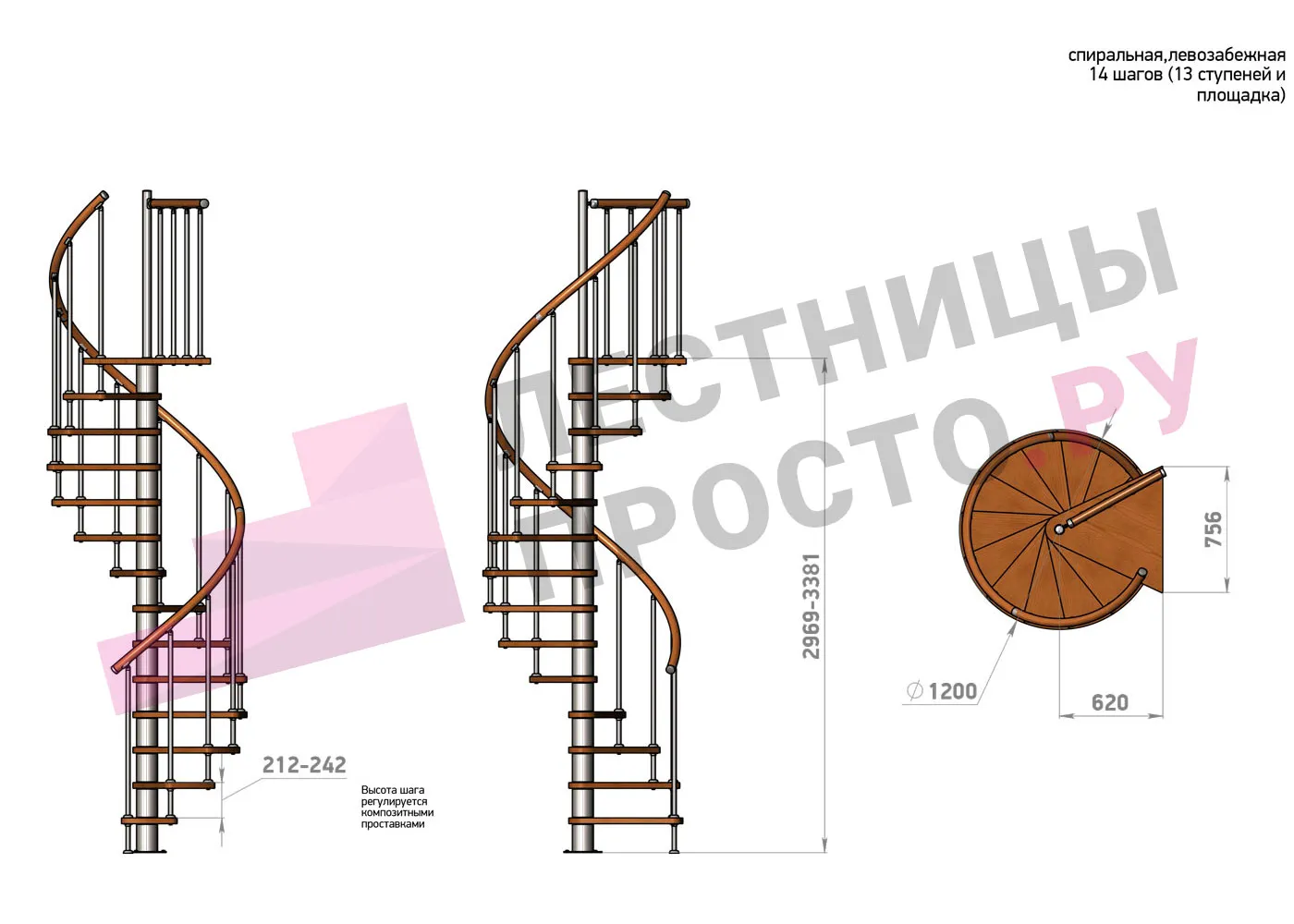 Винтовая лестница Prosto Spiral White/Высота 2969 - 3381 мм
