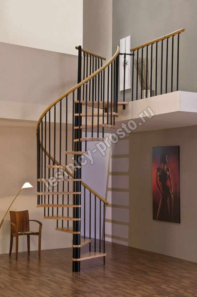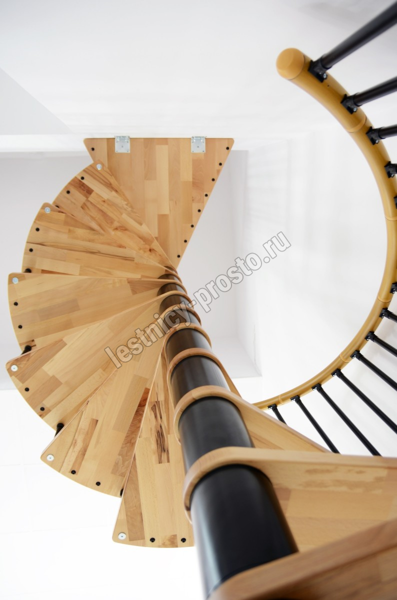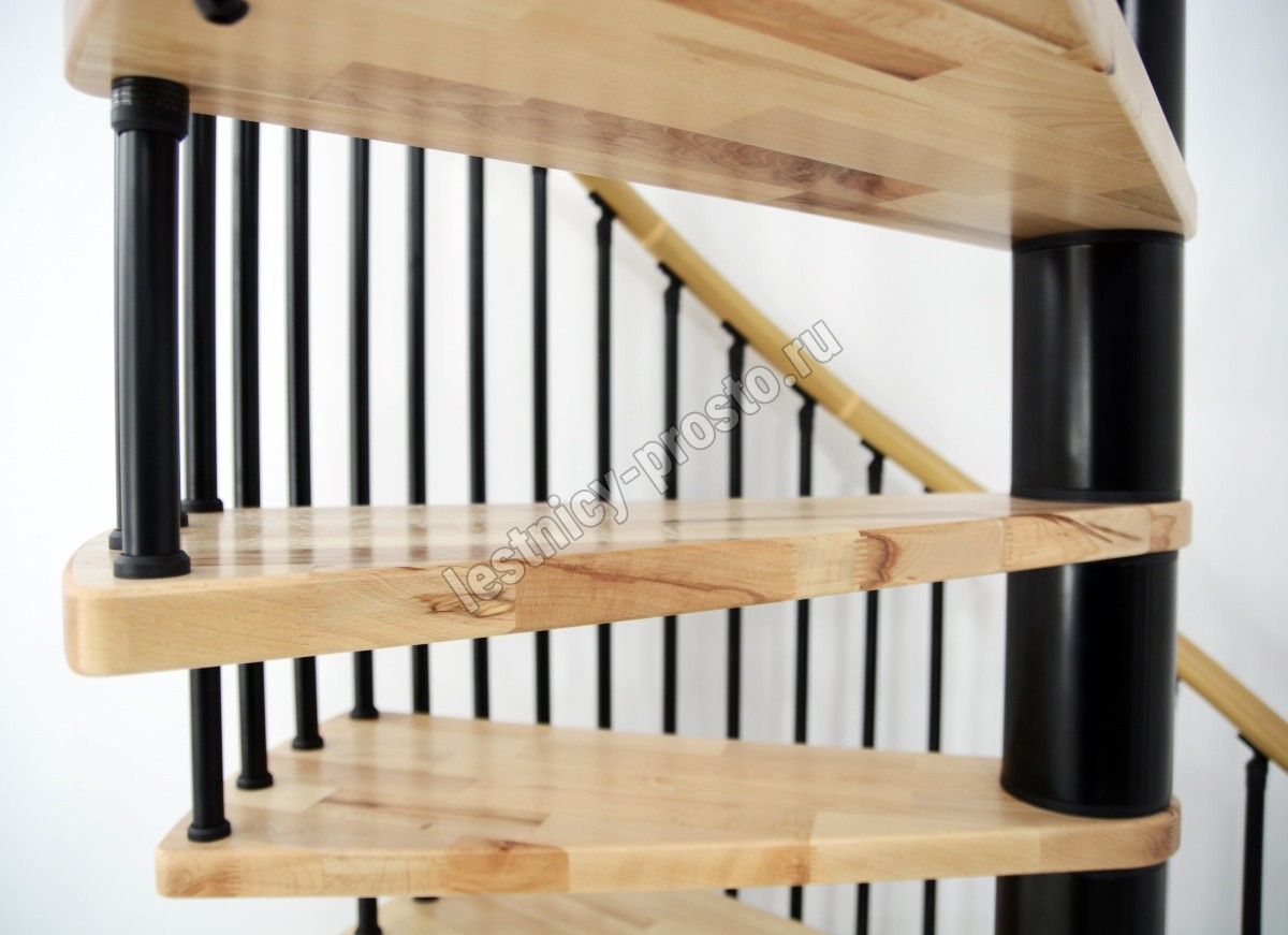 Винтовая лестница SPIRAL WOOD d140 см, чёрная, лакированный дуб