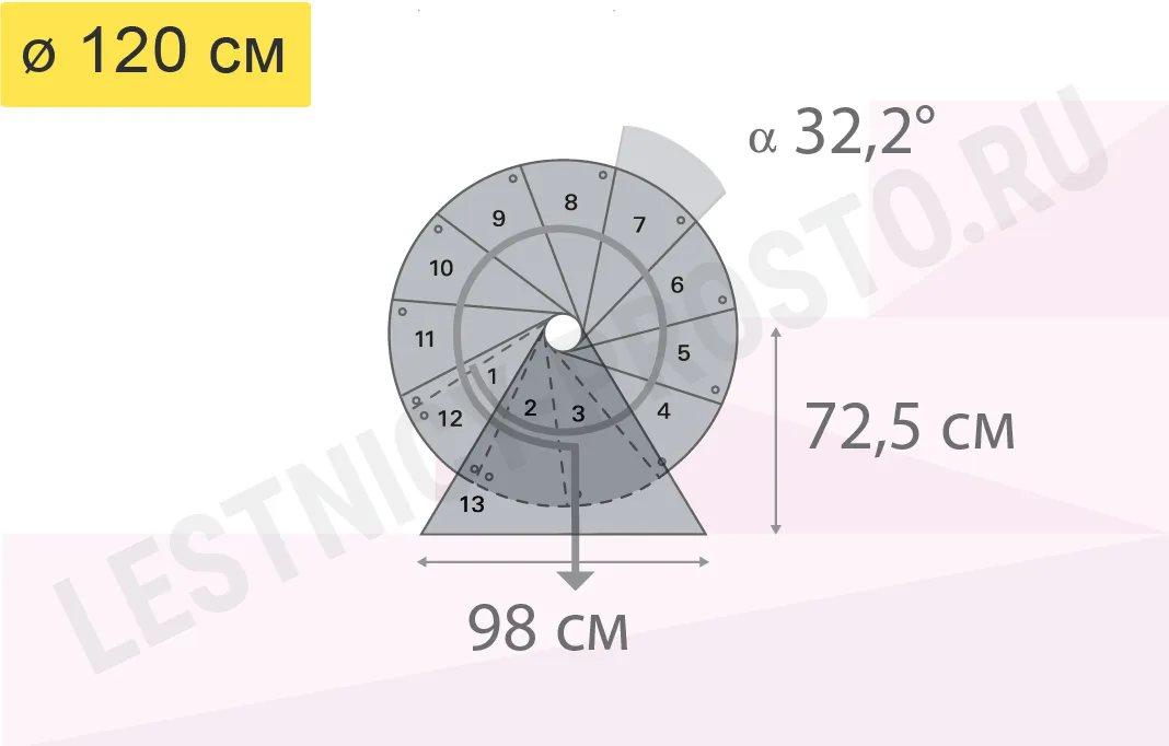 При монтаже лестницы, с помощью специальных пластиковых вставок, варьируется высота шага в пределах от 210 мм до 235 мм, за счёт чего общая высота лестницы может быть получена в пределах ;от 2530 мм до 3060 мм.