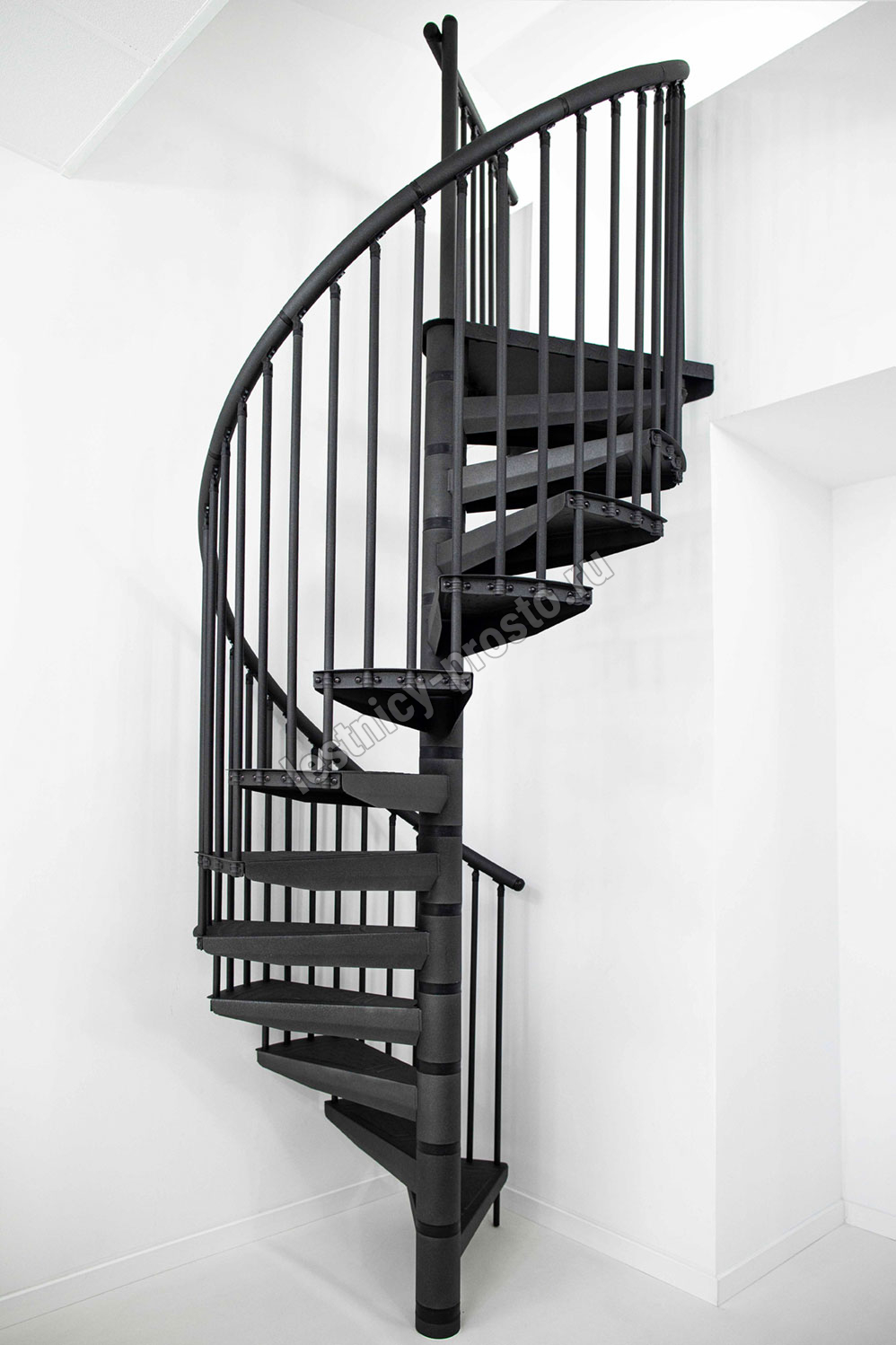 Лестницы RONDO COLOR - идеальное решение для создания непринужденного акцента в интерьере. Они отлично смотрятся в индустриальных и дизайнерских проектах. Модель идеально подходят в качестве лестницы на только что созданный этаж, а также на адаптированный чердак или антресоли. В стандартный комплект входит 12 ступеней и площадка, позволяющие преодолевать перепад уровней до максимальной высоты 300 см. Элементы конструкции имеют плавный диапазон регулировки, позволяющий устанавливать высоту ступеньки в пределах 21-23 см. По запросу возможно конфигурирование набора до максимальной высоты 346 см. Все металлические элементы покрыты порошковой краской высочайшего качества графитового цвета, устойчивого к царапинам и механическим повреждениям. Профилированные нескользящие ступени из листового металла в клетку, снабженные небольшим подступенком для большей безопасности. Алюминиевые поручни с высококачественным порошковым покрытием. Напольные перила по запросу, прямые или круглые. Лестница приспособлена для установки отдельно стоящей, правосторонней или левосторонней.