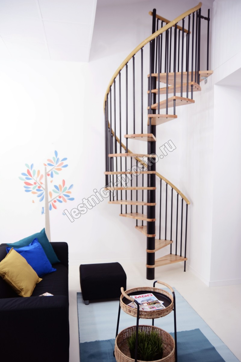 Винтовая лестница SPIRAL WOOD d120 см, черная, лакированный бук