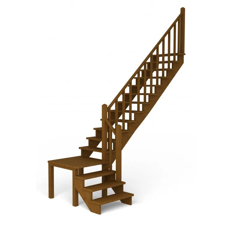 Компактная надёжная лестница. Ступени толщиной 30 мм, изготовлены из массива берёзы по технологии Multiplex, лакированные. Все металлические части оцинкованы, горячим способом и покрыты порошковой краской - черного цвета; Лестница имеет надёжную несущую стальную конструкцию.