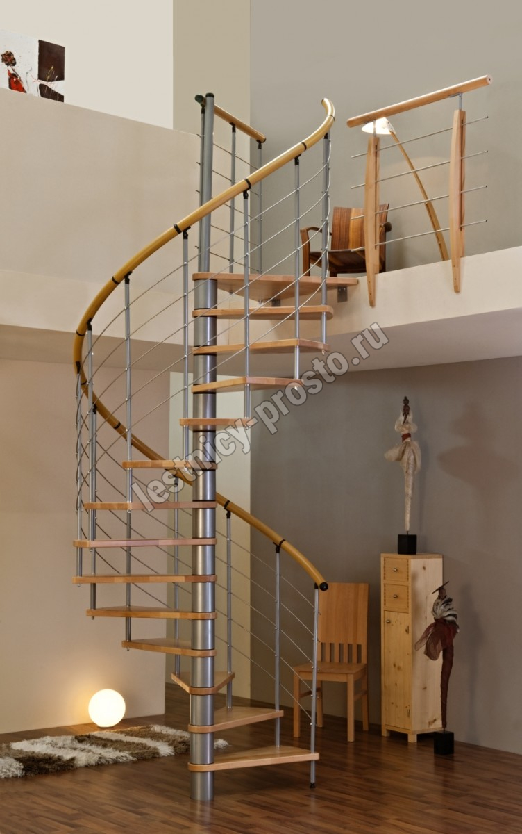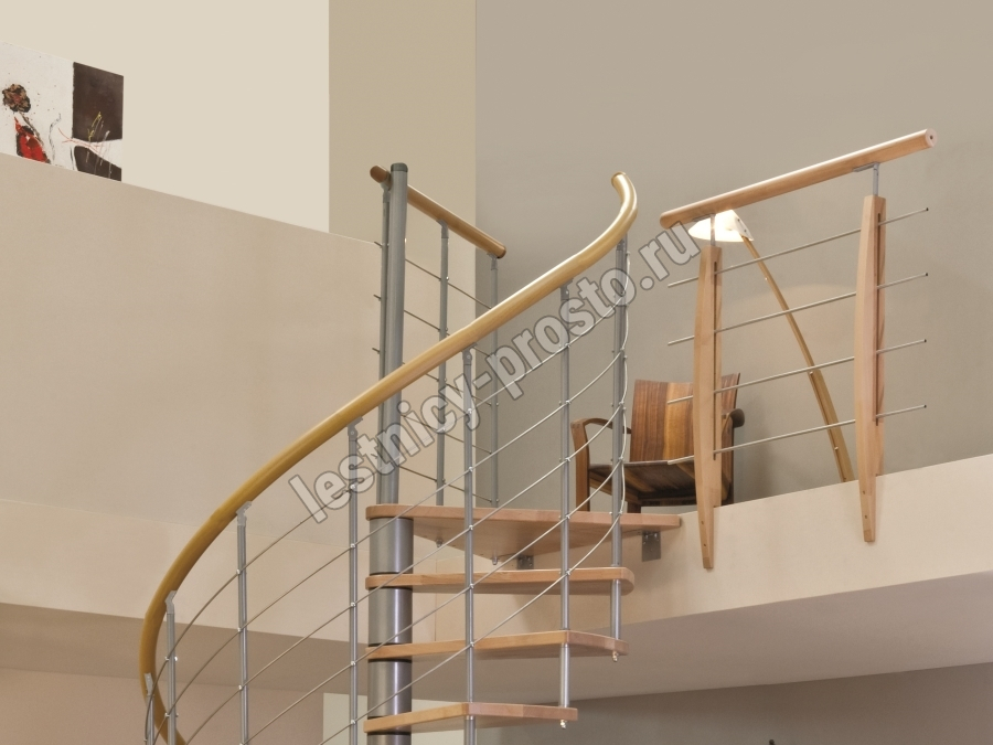 Винтовая лестница Venezia d120 см, серебро, бук лакированный