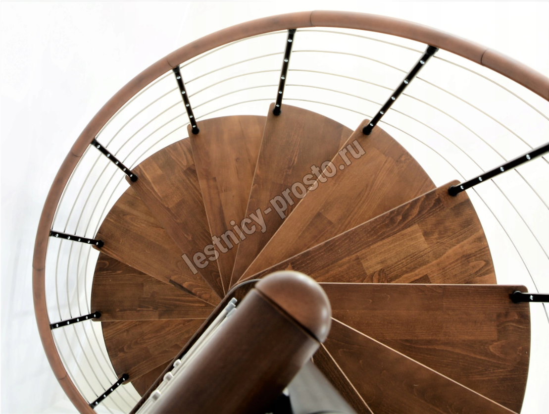 Деревянные ступени и поручни  изготовлены из массива дерева и покрыты специальным лаком от компании Минка, который предотвращает царапины, сколы или стирание поверхности при интенсивном использовании лестницы.