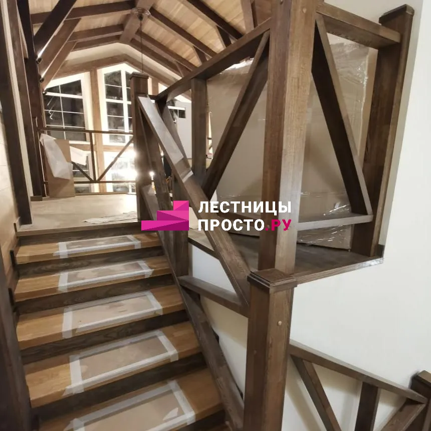 Лестница сосна-бук с двумя площадками ЛГ 200
