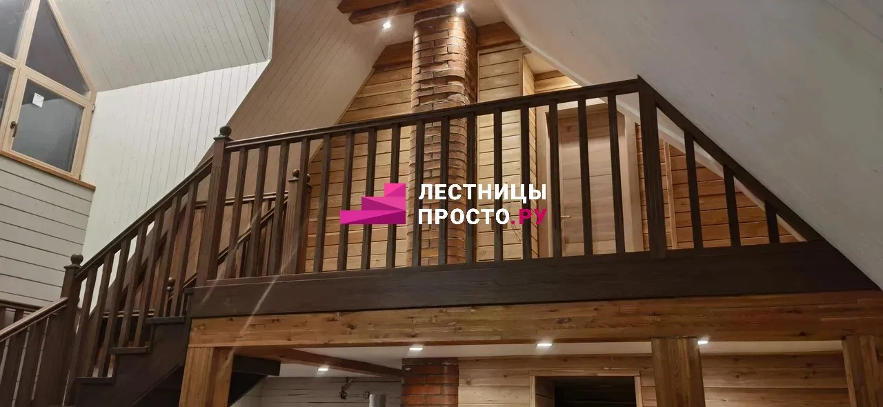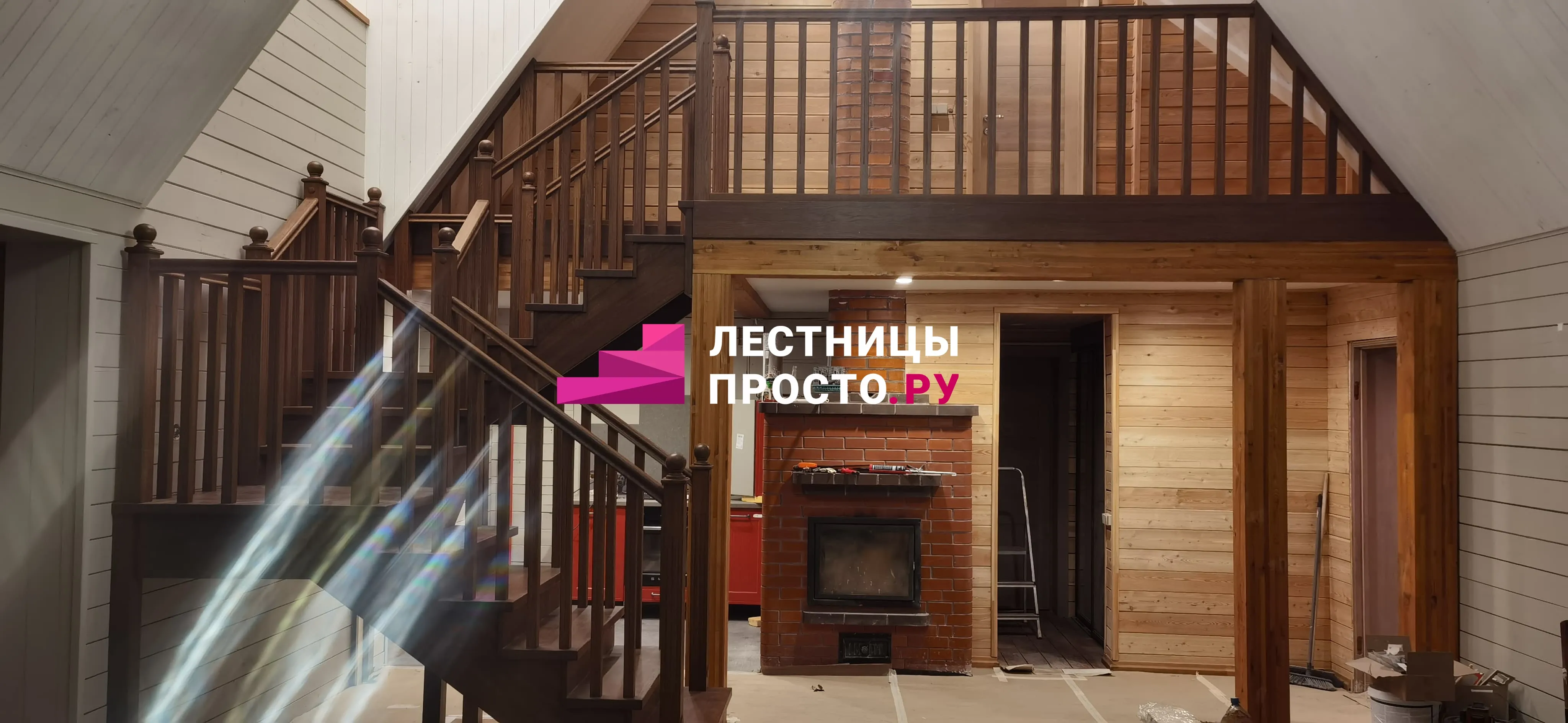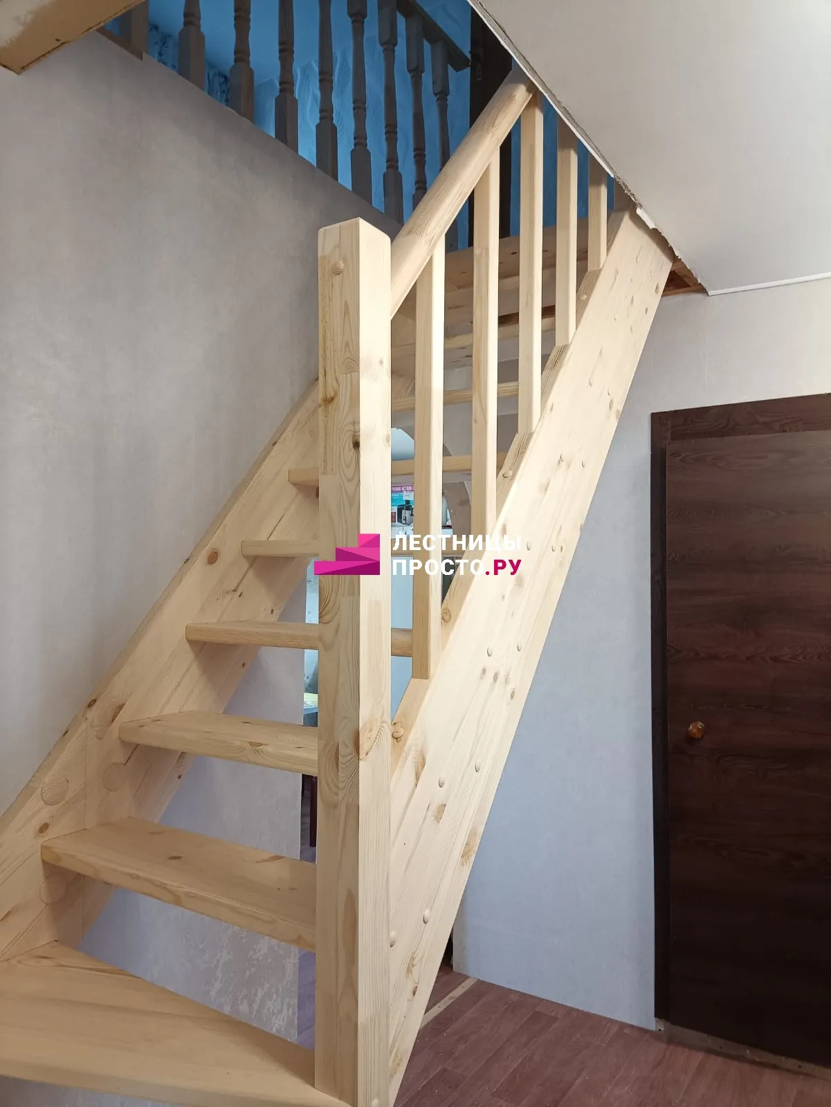 Лестница LP из сосны на второй этаж с поворотом на 180 градусов
